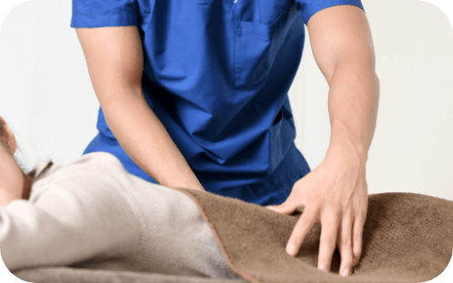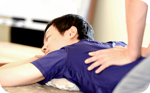 体にやさしく触れながら、筋膜や筋肉の状態を確認し、癒着や緊張